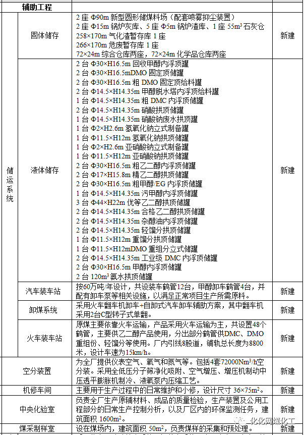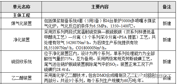 建設內容:包括水煤漿制合成氣裝置、凈化裝置、H2/CO分離裝置、草酸二甲酯裝置、乙二薛裝置等。公用工程及配套輔助