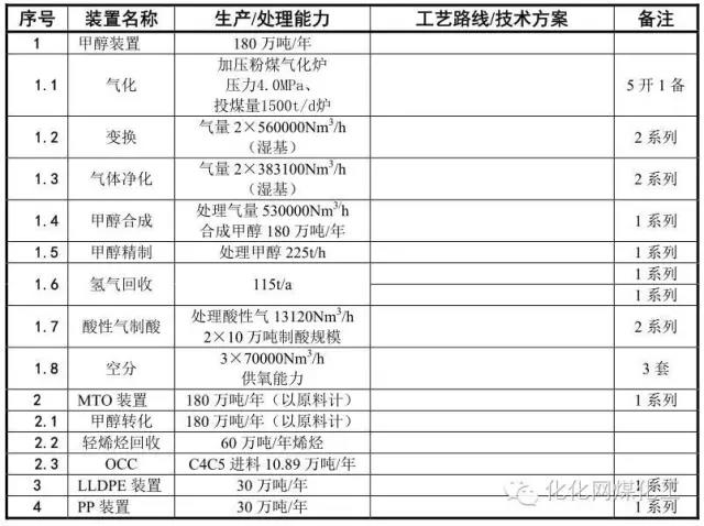 主要生產裝置及工藝技術方案