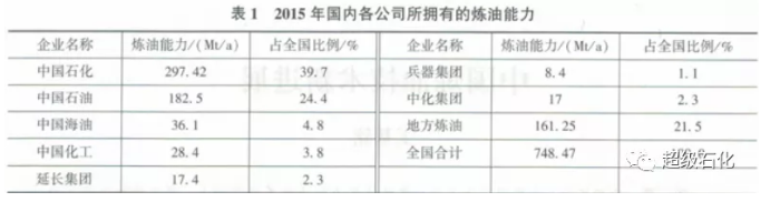 截至2015年年底,中國已擁有千萬噸級煉28座,合計煉油能力364Mt/a,約占全國煉油能力48.6%,其中,中國石化值海煉化分公司、中國石化茂名分公司、中國石化金陵分公司和中國石油大連石化煉油規(guī)模均已超過20Mt/a。