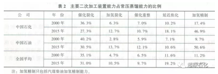 為適應(yīng)原油品質(zhì)劣質(zhì)化、交通運輸燃料需求增加、燃料清潔化步伐加快的趨勢,中國煉油裝置結(jié)構(gòu)調(diào)整步伐加快,主要表現(xiàn)在加氫裂化、加氫精制占常壓蒸餾能力的比例顯著提高,延遲焦化,催化重整比例較快增長,而催化裂化比例相應(yīng)下降。2000-2005年中國練油裝置結(jié)構(gòu)變化如表2所示。